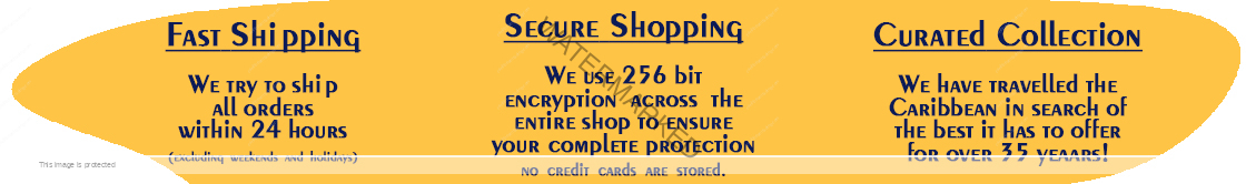We have an extensive curated collection of authentic Caribbean Treasures waiting just ahead. Enter SHOPNOW20 and receive a 20% discount on your entire order! This is a one-time use coupon. Will not work with any other discount code.