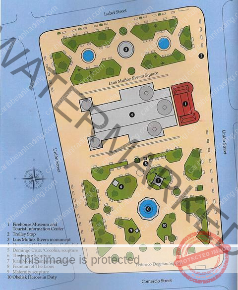 Make sure to visit the Plaza in Ponce Puerto Rico.  The Ponce Plaza is always on the list of things to do in Puerto Rico.  It is most well known for it’s unique fire station Parque de Bombas, and also the church.  It is worth spending some time exploring. As you can see from the map below, there are sculptures to see also. The lion sculptures are each done by a different artist.  You will also find lots of historic architecture and museums, locally made ice-cream and gift shops.  The plaza is well worth a couple of hour’s visit and can be paired with a visit to other sites in Ponce for a full day excursion.