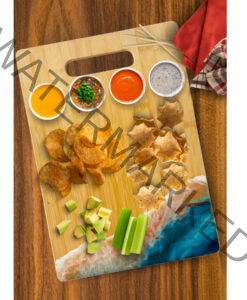 Large Bamboo Cutting Board with Resin Ocean Wave Art