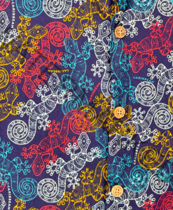 Gecko-Caribbean-Button Down Shirt. Introducing Caribbean Trading’s exclusive collection of Caribbean-Hawaiian styled men’s 100% cotton button-down shirts. These shirts seamlessly blend the vibrant, colorful Caribbean aesthetic and the laid-back, tropical vibe of the Caribbean. Crafted with premium-quality cotton fabric, these shirts offer a luxurious feel and exceptional comfort, making them perfect for any occasion.