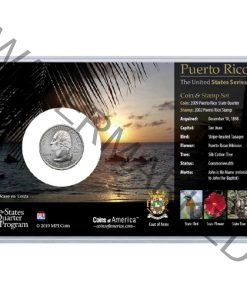 This brilliant item showcases an uncirculated Puerto Rico State Quarter along with an unused Puerto Rico stamp from the State Postage Stamp Series. The colorful insert highlights this beautiful state and includes interesting facts and other educational features. The 4″ x 6″ hard acrylic case secures and protects the coin and postage stamp.