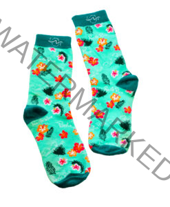 CARIBBEAN TRADING IS JUST SO SOCKSY. THESE TROPICAL TOE TREASURES WILL MAKE YOU AND EVERYONE ELSE SMILE LIKE YOU JUST GOT LUCKY! Machine wash in cold water, please wash inside out and use only color safe bleach. Snuggle in a pair today and get your feet dancing the way you did as a child.