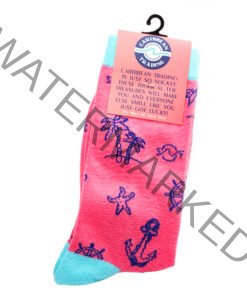 CARIBBEAN TRADING IS JUST SO SOCKSY. THESE TROPICAL TOE TREASURES WILL MAKE YOU AND EVERYONE ELSE SMILE LIKE YOU JUST GOT LUCKY! Machine wash in cold water, please wash inside out and use only color safe bleach. Snuggle in a pair today and get your feet dancing the way you did as a child.